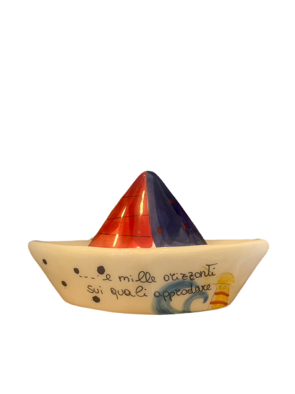 Elegante barchetta in ceramica, perfetta come bomboniera o dono speciale. Realizzata a mano con cura, un tocco di classe che renderà ogni occasione unica e indimenticabile