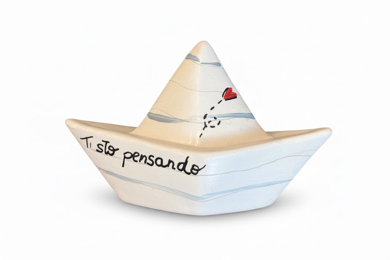 Elegante barchetta in ceramica, perfetta come bomboniera o dono speciale. Realizzata a mano con cura, un tocco di classe che renderà ogni occasione unica e indimenticabile