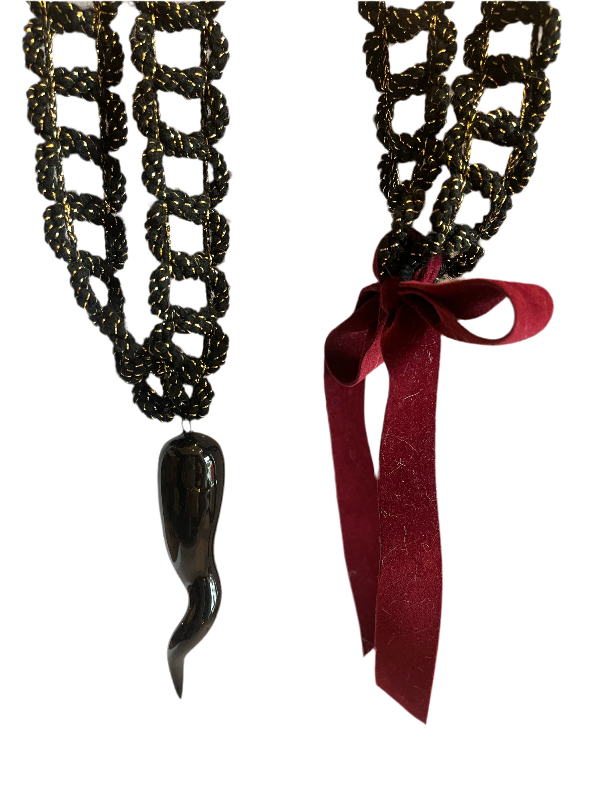 Collana con corno ricamata