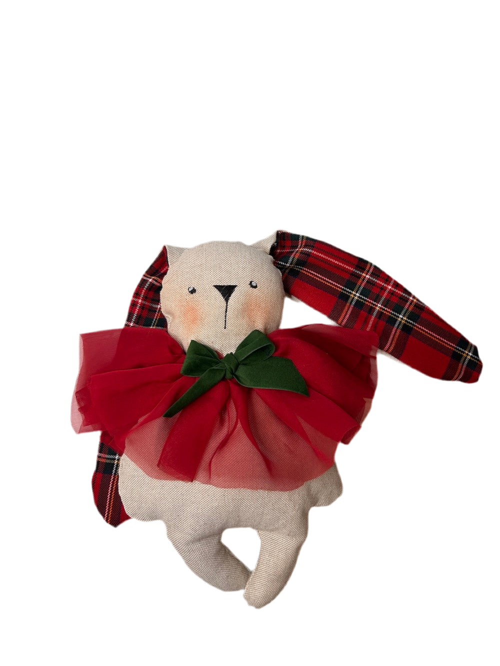Scopri la nostra adorabile Bunny dai dettagli scozzesi, un piccolo tesoro che unisce dolcezza e stile. Morbida e soffice, può essere coccolata come peluche, diventare un elegante addobbo per il Natale o trasformarsi in un tocco speciale per arricchire i tuoi regali. Grazie al suo design versatile, la Bunny porta calore e originalità in ogni occasione, rendendo ogni ambiente o pacco regalo unico e indimenticabile.