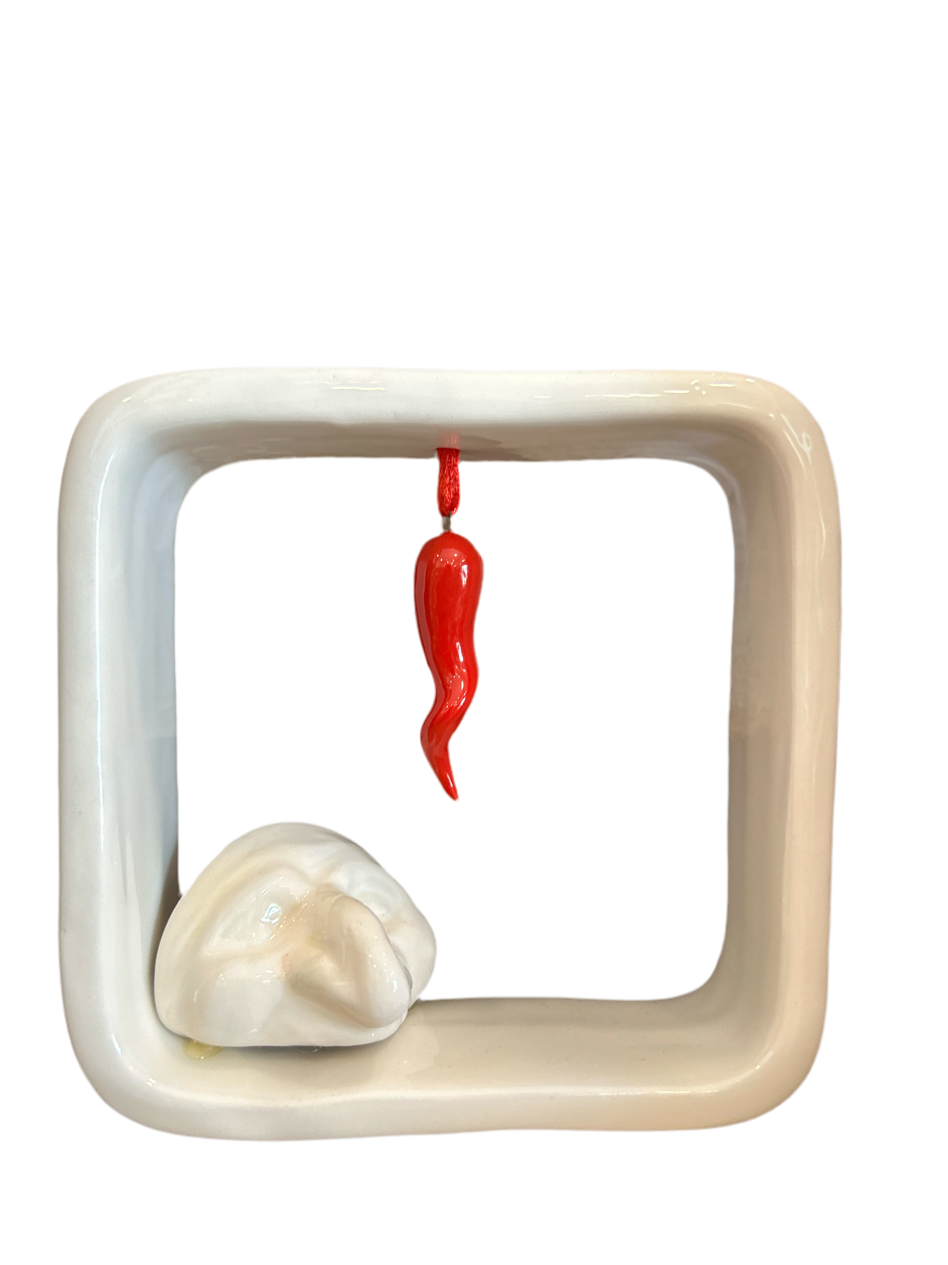 Un oggetto unico che unisce arte, tradizione e superstizione napoletana. Questa cornice in ceramica artigianale custodisce al suo interno le iconiche mani scaramantiche, simboli portafortuna che da sempre accompagnano la cultura partenopea come difesa contro la malasorte.