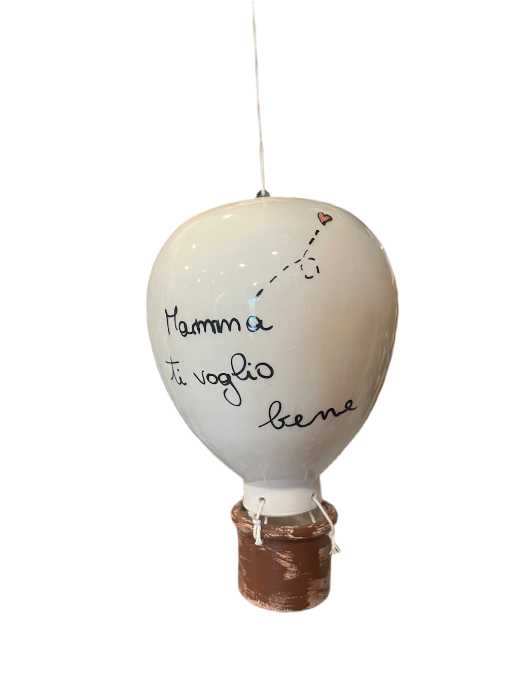 Mongolfiera in ceramica con scritta 'Ti voglio bene mamma': un volo verso l'amore materno, un regalo tenero e significativo.