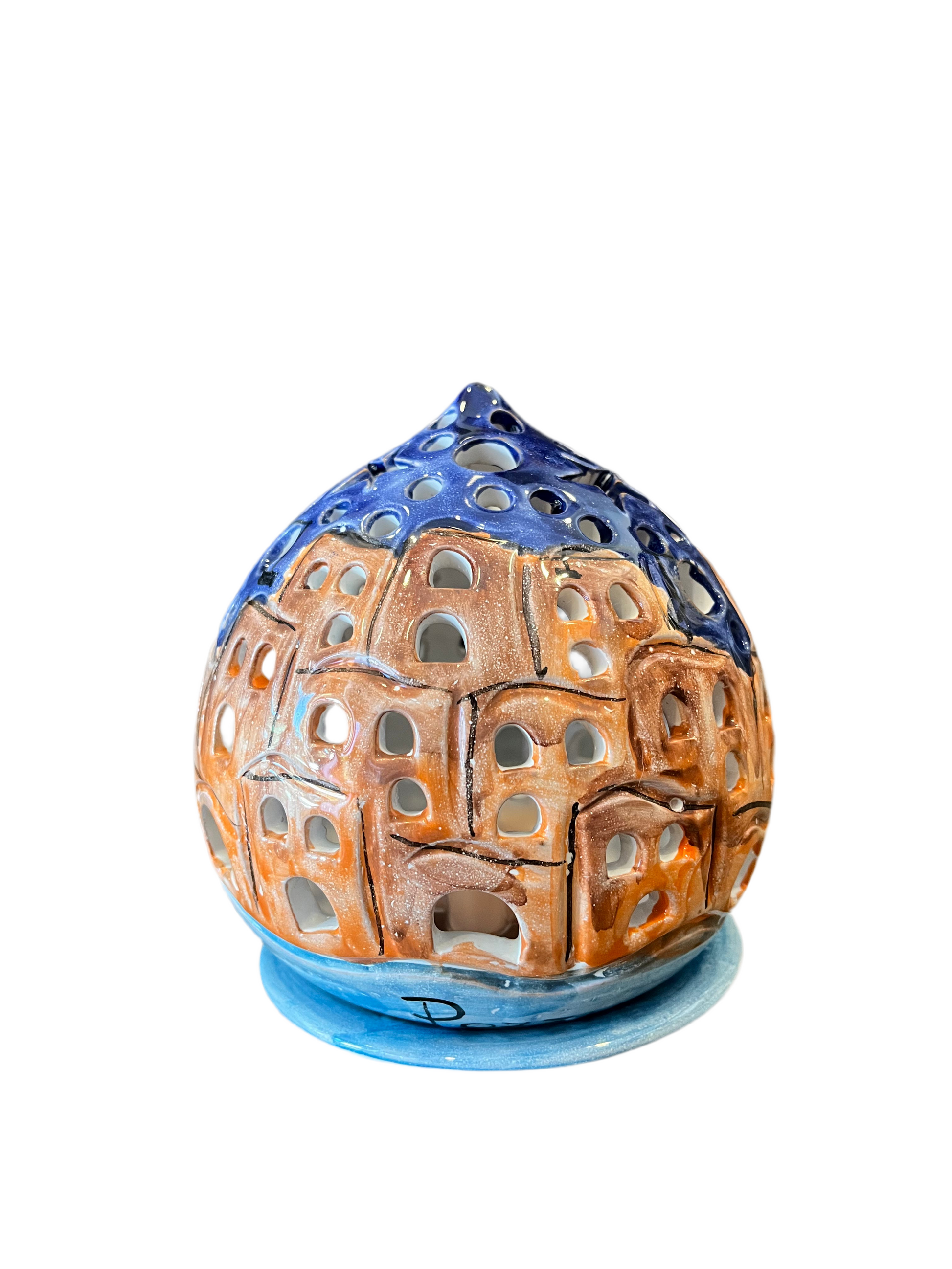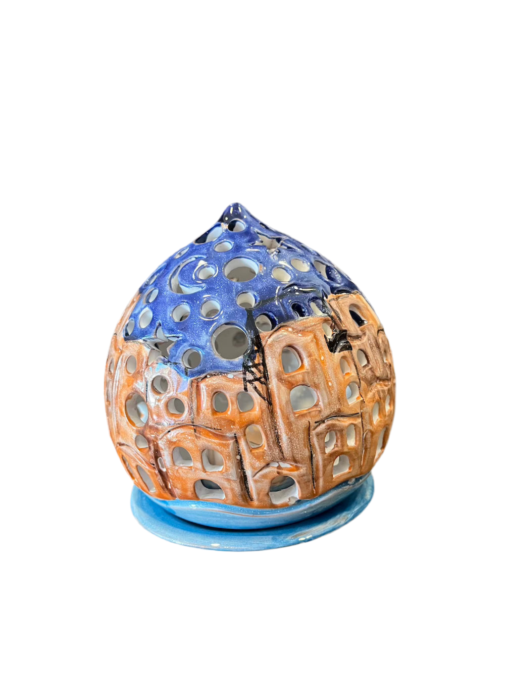 Un tocco di luce artigianale: questo portacandela traforato è decorato con la veduta di Pozzuoli, ma può essere personalizzato con il luogo del cuore! Dopo l’acquisto, scrivici su email, Instagram o WhatsApp per creare il tuo pezzo unico.