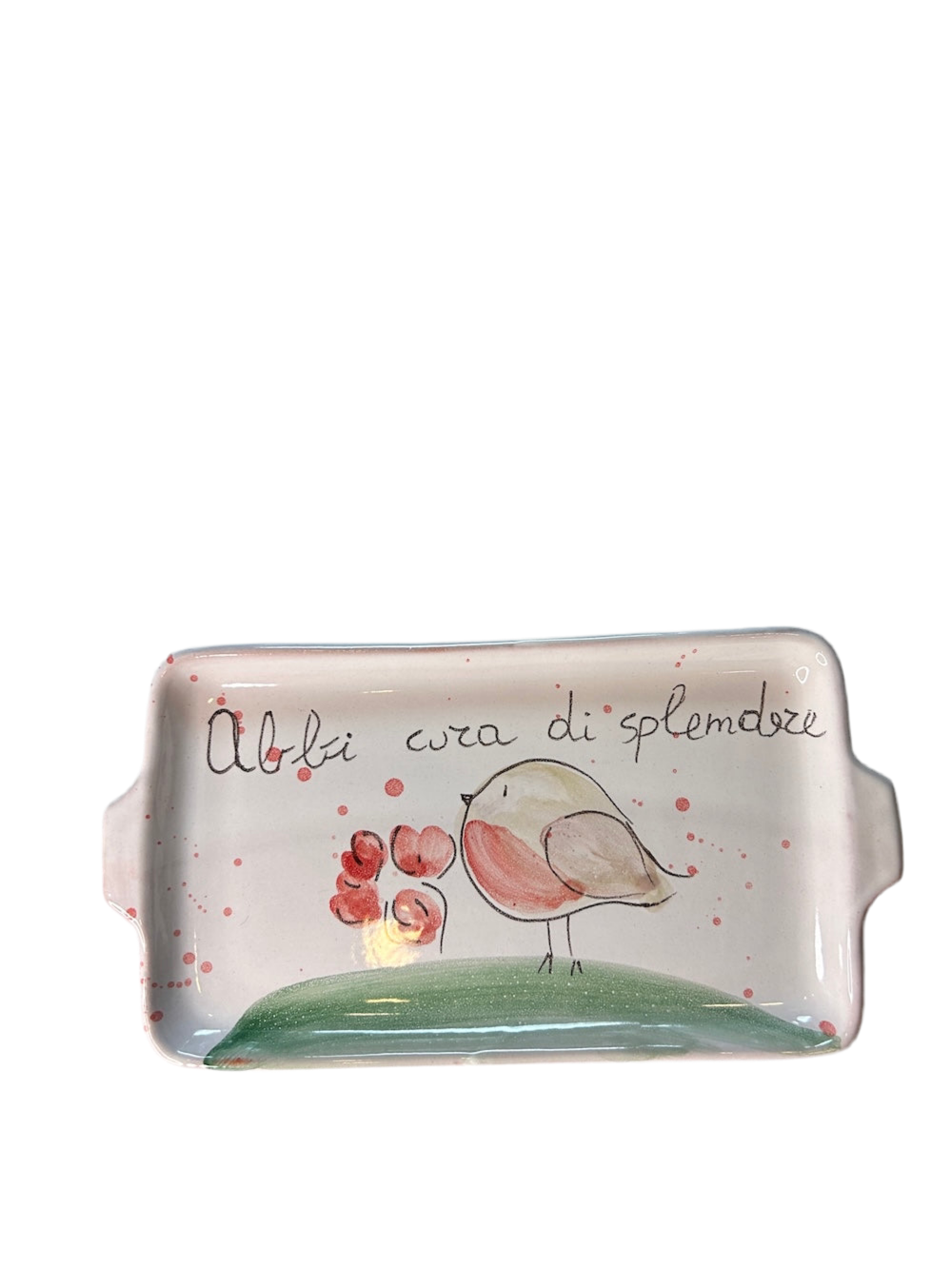 Un messaggio di bellezza e positività da portare ogni giorno con te: questo elegante vassoio in ceramica riporta la frase “Abbi cura di splendere”, un invito semplice ma potente a ricordarsi di brillare sempre.